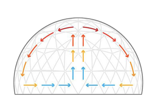 يشكل نصف الكرة الأرضية أقوى شكل ممكن لأنه يتمتع بمقاومة الرياح القوية (حتى 100 كم / ساعة) ويخلق أقل احتكاك ضد تيارات الرياح. ز