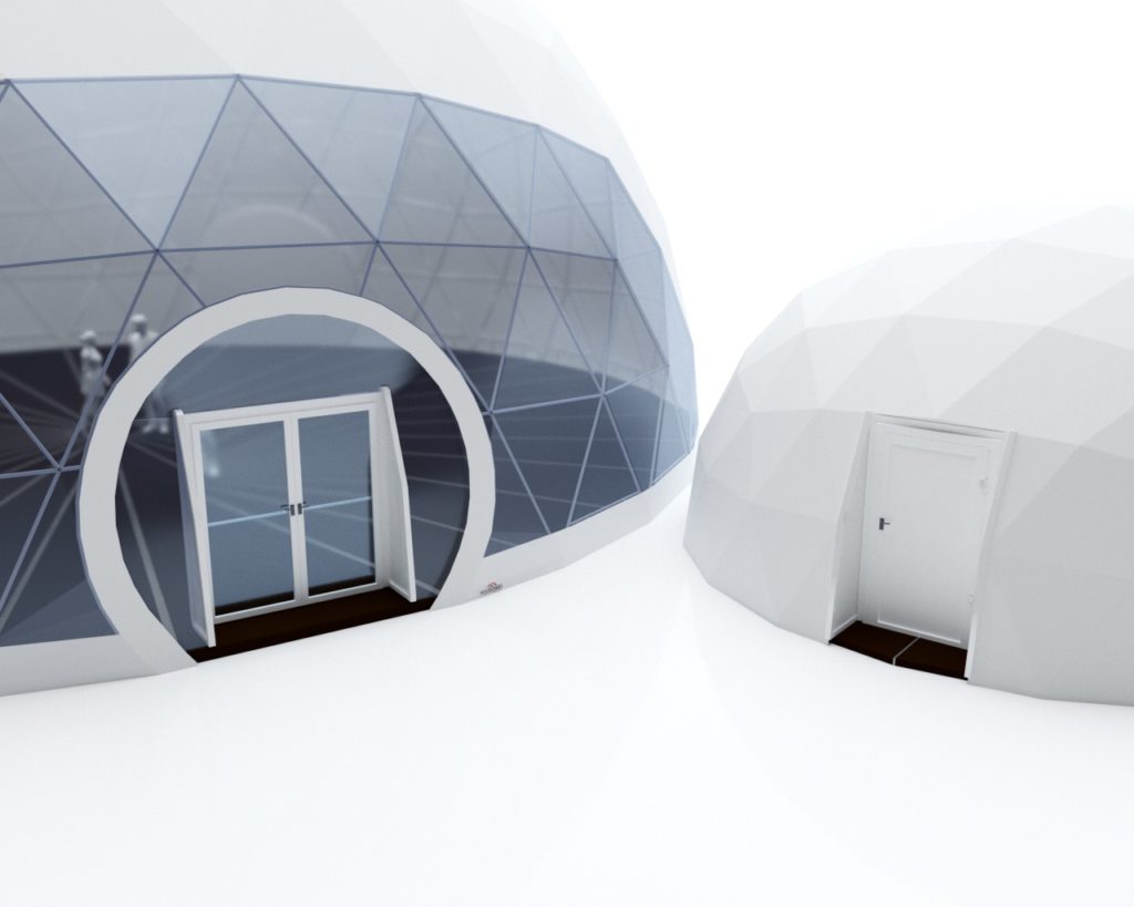 Sapoworld, qızdırılan və ya kondisionerli günbəzlər üçün tək və ya ikiqat alüminium şüşəli qapıların quraşdırılmasını tövsiyə edir.