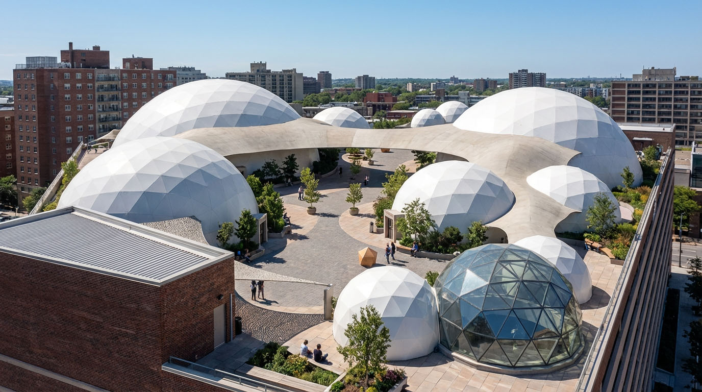 سازه ژئودزیک با فرم هندسی زیبایی که دارد می تواند فضایی جذاب برای مراجعه کنندگان ایجاد نماید. یکی از کاربردهای این سازه در ایجاد نمایشگاه گل و گیاه و گلخانه های تروپیکال است