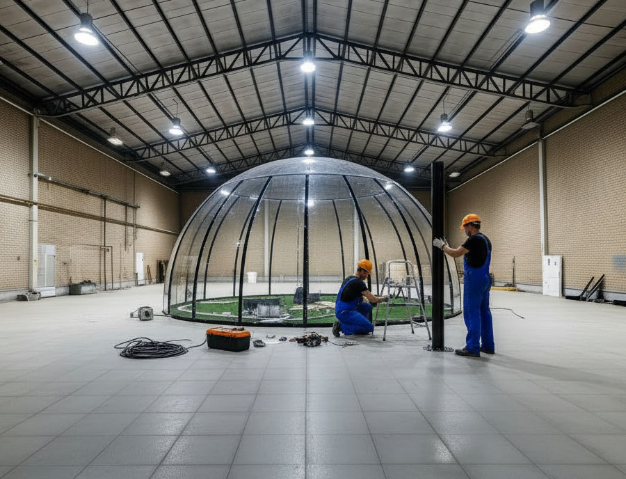 به سفارش کارفرما, نوعی از سازه های کابلی جمع شونده طراحی و ساخته شد. این سازه ها پیچیدگی های خاص خود را دارند و در صورت طراحی دقیق می توان از آنها برای ایجاد فضاهایی برای فصول مختلف استفاده نمود. 1
